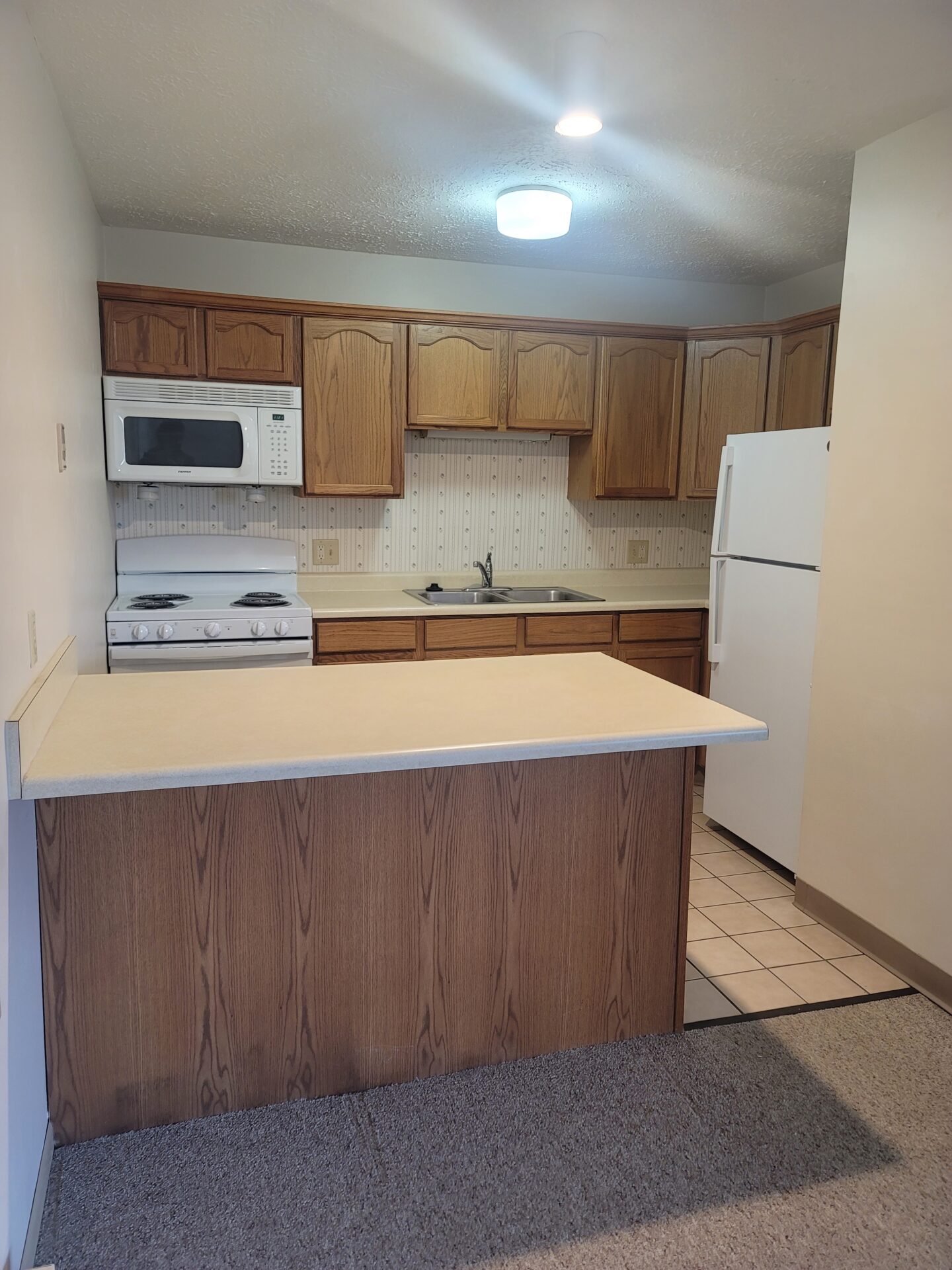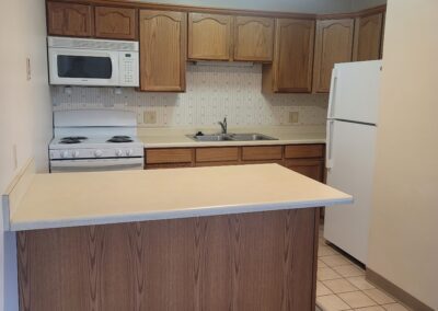 Each one and two bedroom, one bathroom apartment comes equipped with a refrigerator, stove and a built in microwave.